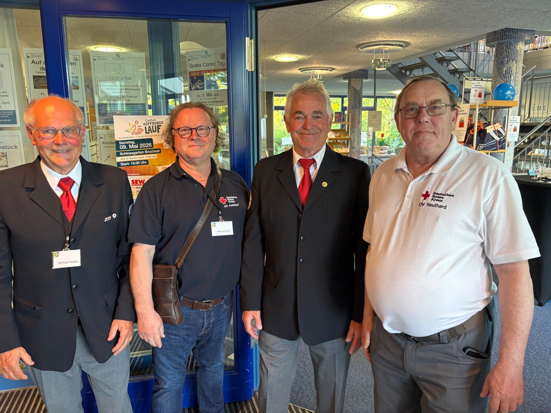 v.l.n.r: M.Taubitz, R.Habitzreuther, E. Habitzreither ( DRK Karlsdorf ) A. Friedrich ( DRK Neuthard )